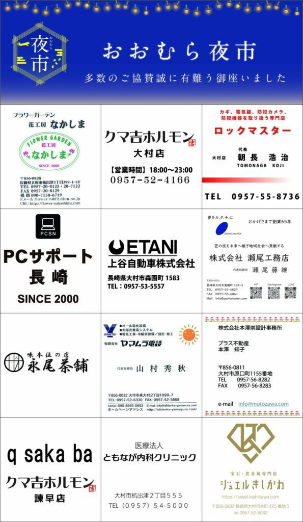 おおむら夜市に際し多大なるご協力・ご協賛された企業の皆様、誠にありがとうございます。以下にご協賛された企業様のご紹介をさせていただきます。これからも大村商工会議所青年部をよろしくお願い致します。