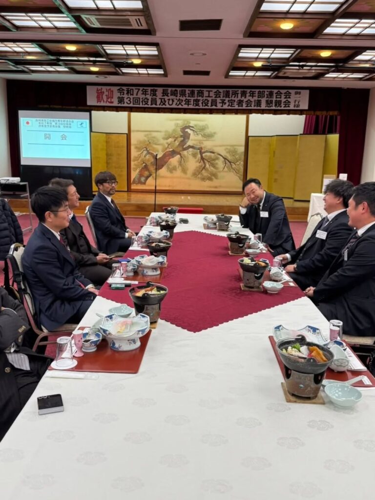 長崎県連商工会議所青年部連合会の役員会及び次年度役員予定者会議に、近藤直前会長•野島監事•為永会長予定者•瀬尾副会長予定者の4人が参加いたしました![]()